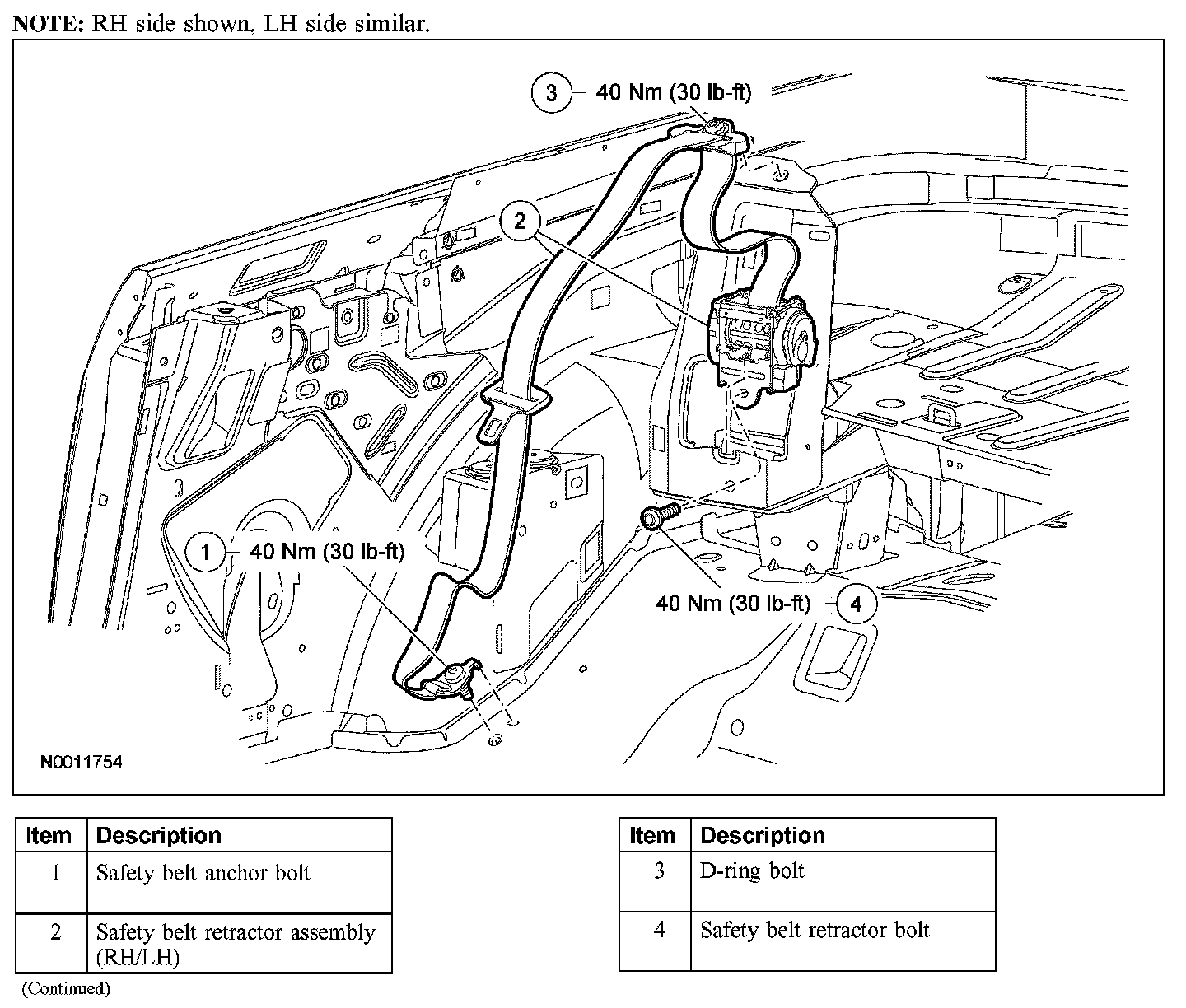 WARNING: All safety belt assemblies (including retractors, buckles, belt tension sensor [BTS], if equipped, front seat belt buckle support assemblies [slide bar], if equipped, shoulder belt height adjusters, if equipped, child safety seat tether bracket assemblies, if equipped and attaching hardware) should be inspected after any collision. Ford recommends new safety belt assemblies be installed unless a qualified technician finds the assemblies show no damage and operate correctly. Safety belt assemblies not in use during a collision should also be inspected and new assemblies installed if either damage or incorrect operation is noted.