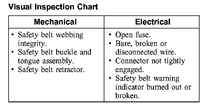3. If the inspection reveals an obvious concern(s) that can be readily identified, repair as required. With the exception of removing a twist from the safety belt webbing, do not attempt to repair a component of the safety belt system; new components must be installed.