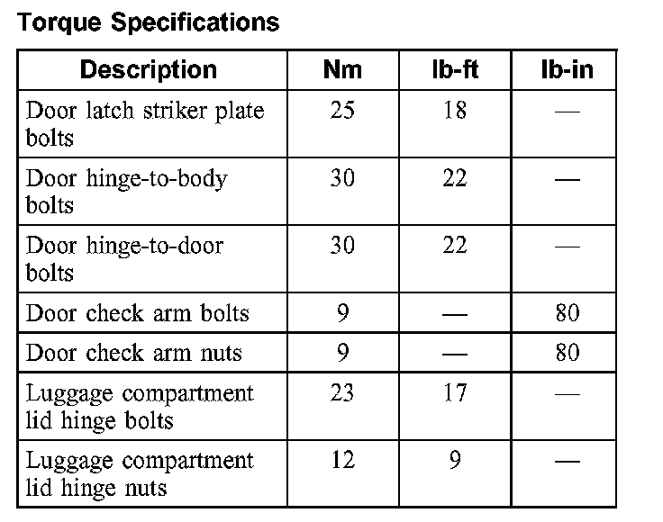 Torque Specifications: