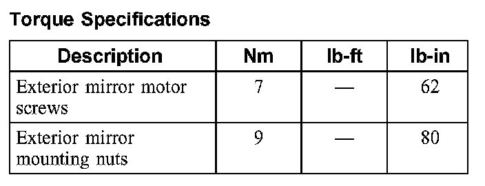 Torque Specifications: