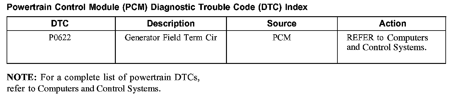 Powertrain Control Module (PCM) Diagnostic Trouble Code (DTC) Index