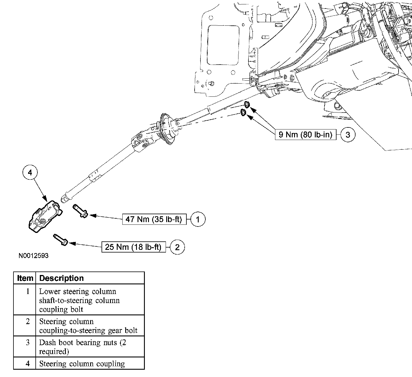 4. Remove and discard the steering column coupling-to-steering gear bolt.
