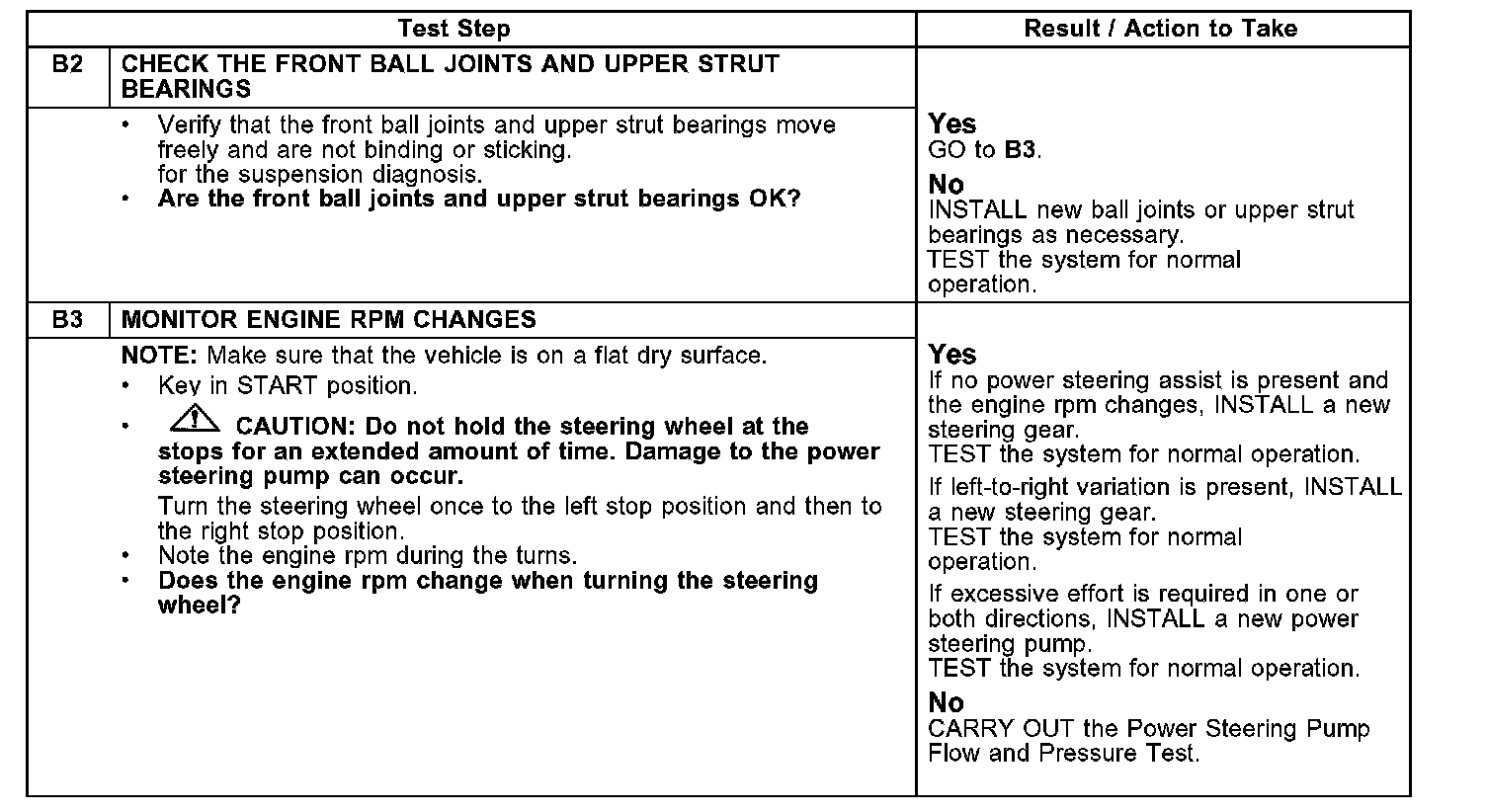 PINPOINT TEST B: STEERING IS VERY DIFFICULT/VERY EASY