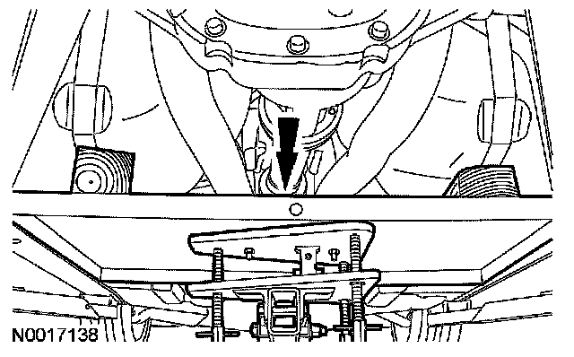 11. Using the special tool, raise the rear axle so the mark made in Step 3 lines up with the protective sleeve.