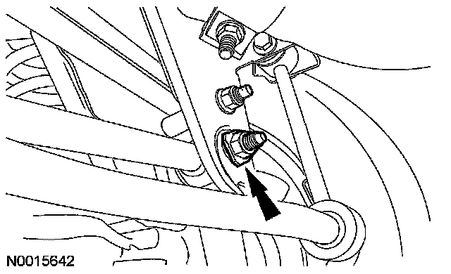 Loosen the panard rod-to-body mount nut, then remove and discard the lateral stiffener bar-to-body mount nut and flag bolt.