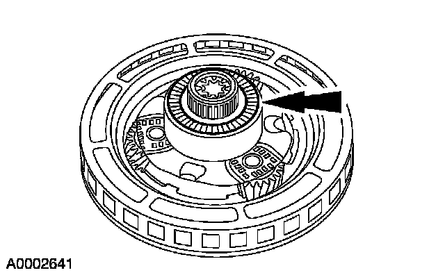 4. Remove and inspect the No. 2 overdrive planetary thrust bearing on the nose of the overdrive planetary gear carrier assembly.