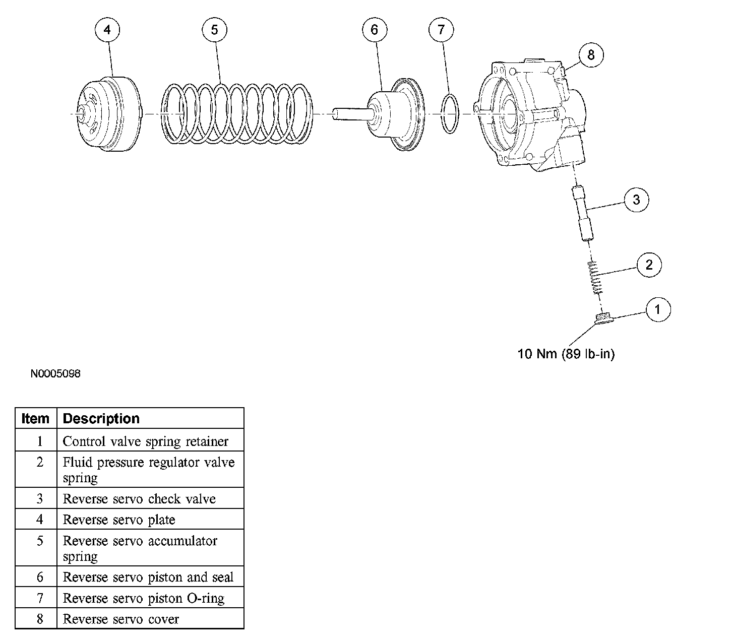 5. Install the reverse servo spring and check valve.
