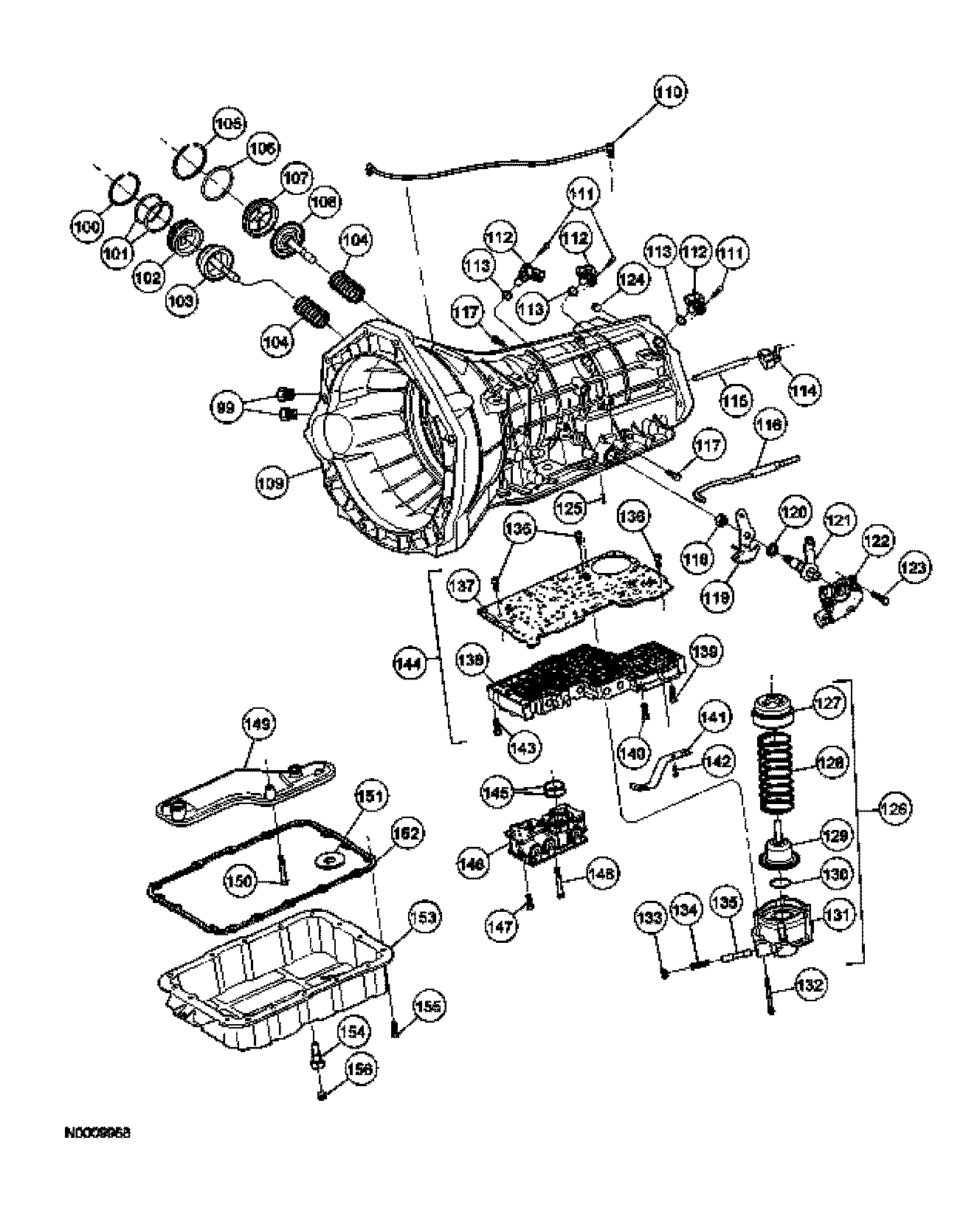 NOTE: The transmission fluid pan gasket is reusable. Clean and inspect the gasket for damage. If not damaged, the gasket should be reused.