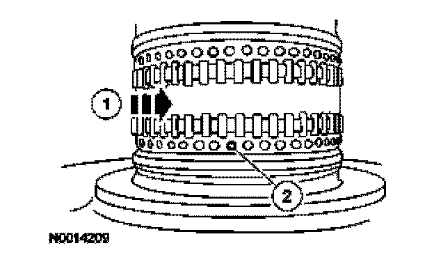 1. Rotate the center support bearing to locate the direct clutch feed hole.