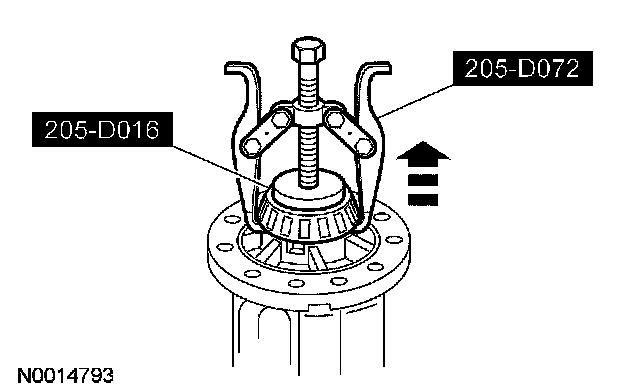 14. Using the special tool, install the differential bearings on the differential case.