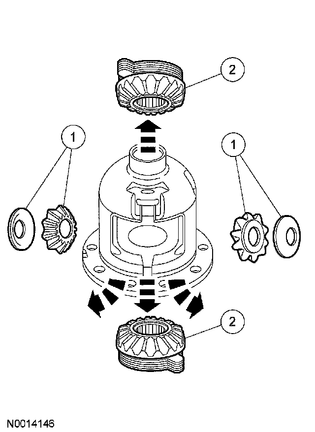 1. Remove the differential pinion gear and thrust washers.