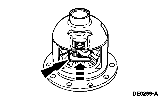 12. Using a soft-faced hammer, install the differential clutch spring.