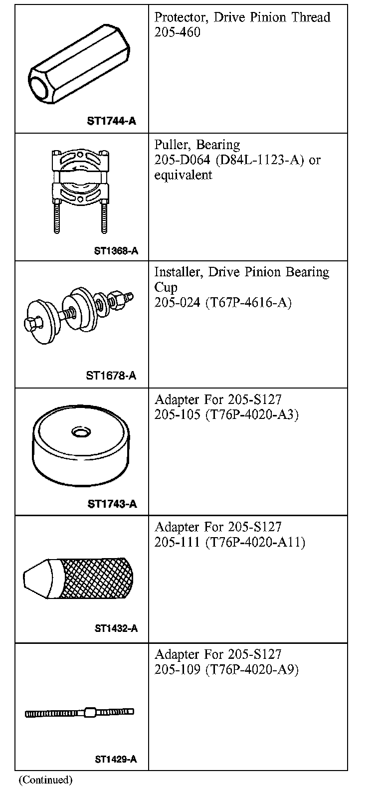 ^ After the correct drive pinion bearing adjustment shim thickness has been determined, remove all of the special tools.