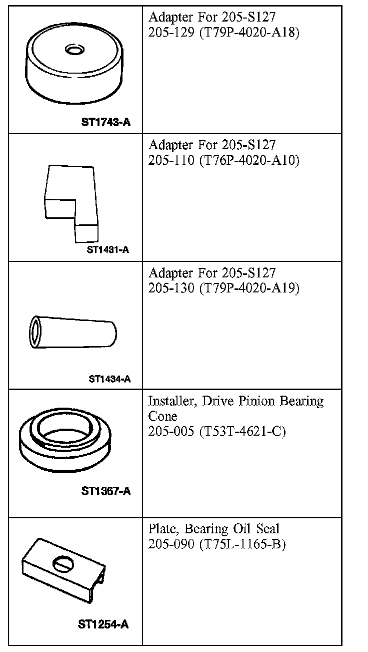 4. NOTE: Apply only a light oil film on the drive pinion bearings before assembling the tools.