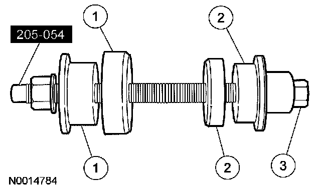 2. Tighten the special tool to seat the drive pinion bearing cups into their bores.
