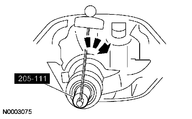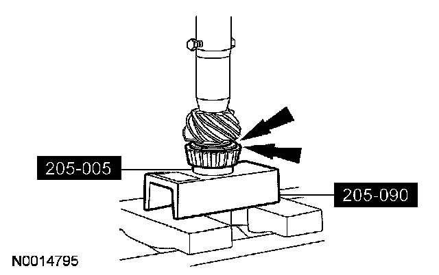 1. Position the special tool and the inner and outer drive pinion bearing cups in their respective bores.