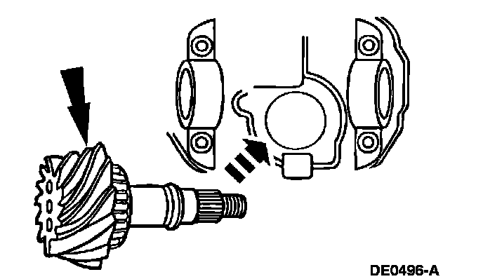 8. NOTE: Drive pinion bearing adjustment shims must be flat and clean.