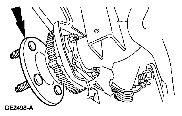 8. CAUTION: Damage to the rear brake anti-lock sensor may occur if it is not removed before the axle shaft U-washer.