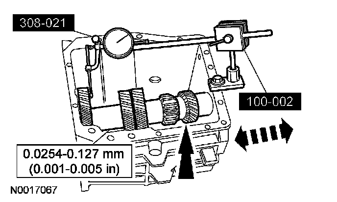 6. Using the special tool, measure the countershaft cluster gear end play.