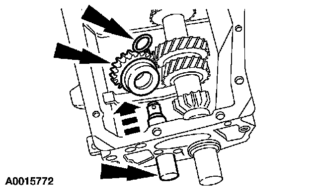 15. NOTE: Verify that the 4th speed synchronizer blocking ring is still in position.