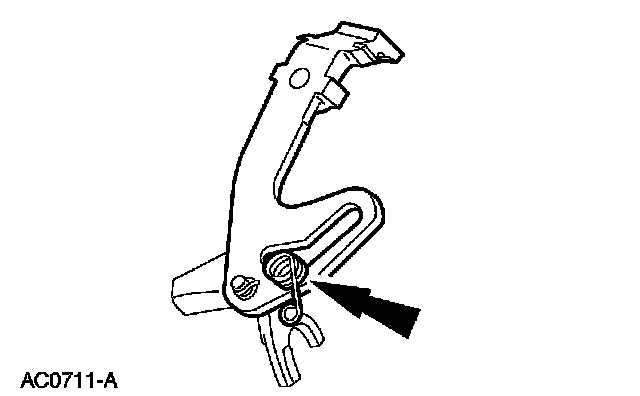 Slide the gearshift offset lever and the extension housing into place as an assembly. Press downward on the gearshift offset lever to compress the shifter interlock spring and push the gearshift offset lever and extension housing into place.