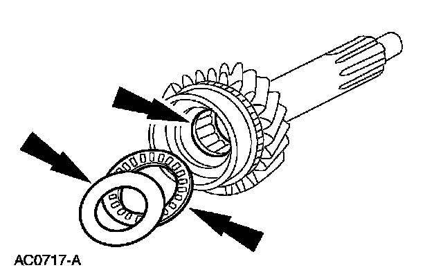 13. Install the roller bearings, the input shaft bearing spacer, the thrust bearing and the thrust washer.