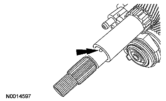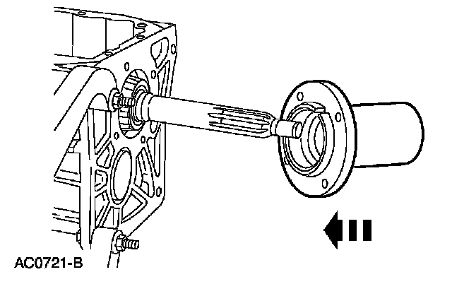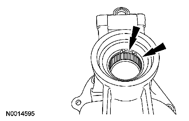22. CAUTION: To prevent component damage when installing the extension housing, the alignment tab on the reverse brake ring must engage the alignment slot in the extension housing.