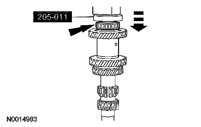 1. Using the special tool, press and remove the countershaft bearing from the countershaft.