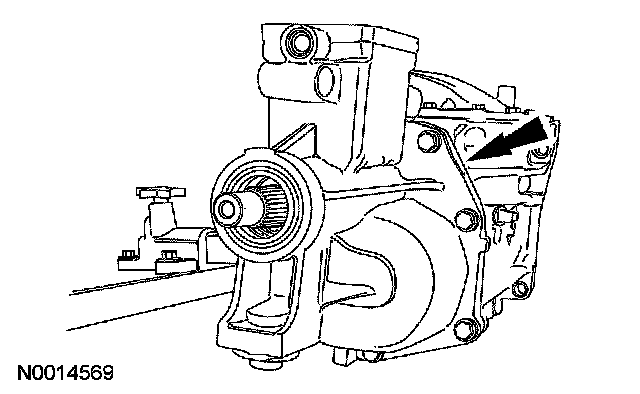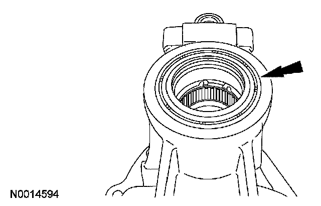 15. Using a hammer and a drift, remove the output shaft seal from the inside. Discard the seal.