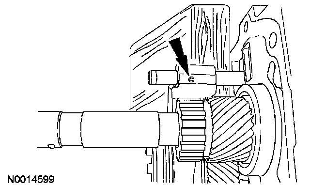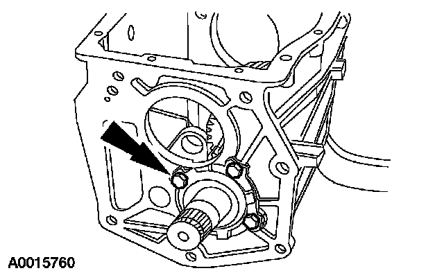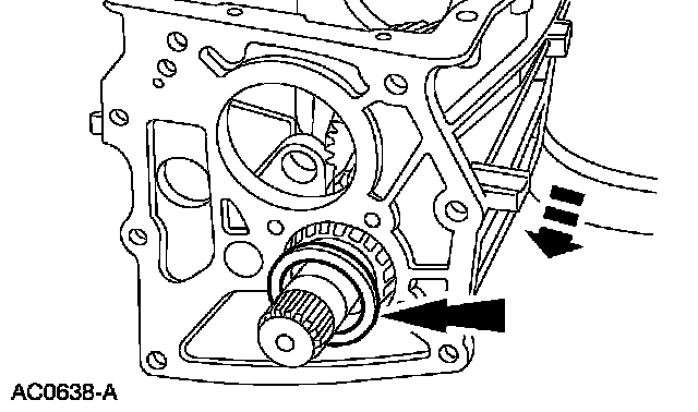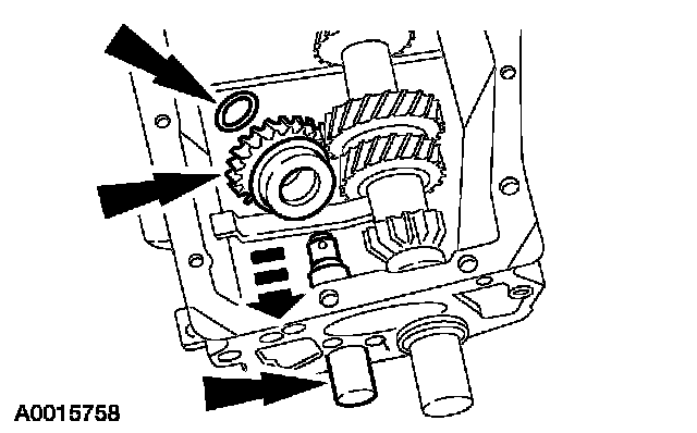 ^ Rotate the input shaft until the flat on the 4th gear clutching teeth aligns with the countershaft cluster gear.