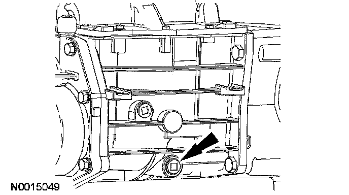 1. NOTE: Drain the transmission while the transmission fluid is warm. Remove the drain plug.