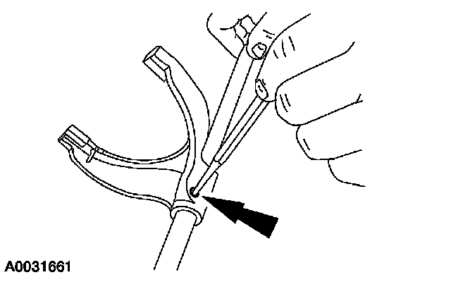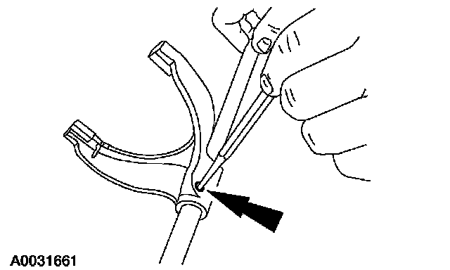 1. Using a 5/32-inch drift and a hammer, remove and discard the split pin. Slide the shift fork from the shift rail.