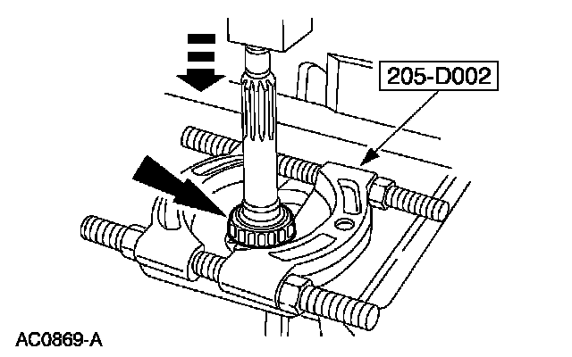 2. Using the special tool and a press, remove the input shaft front bearing assembly. Discard the bearing.