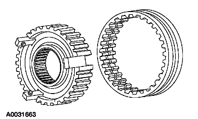 2. Remove the sliding sleeve, then remove the synchronizer struts and the springs.