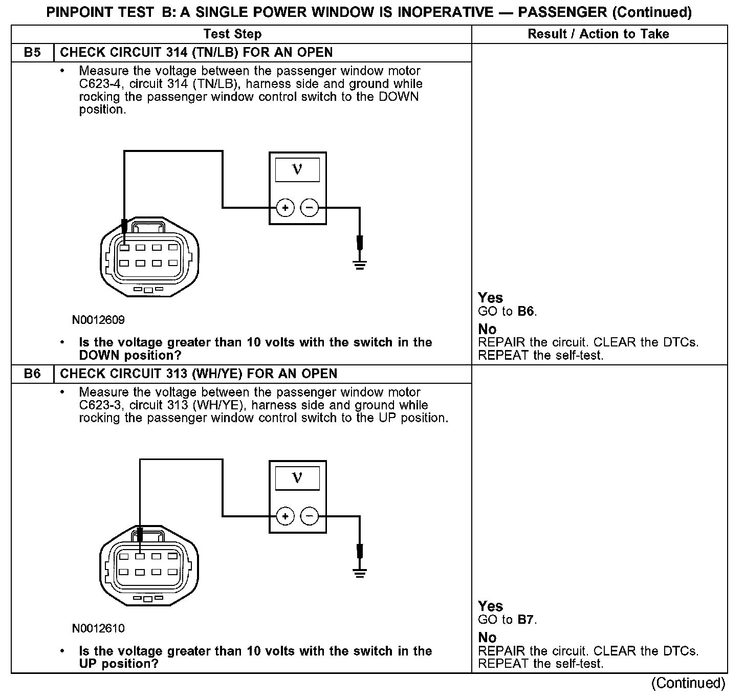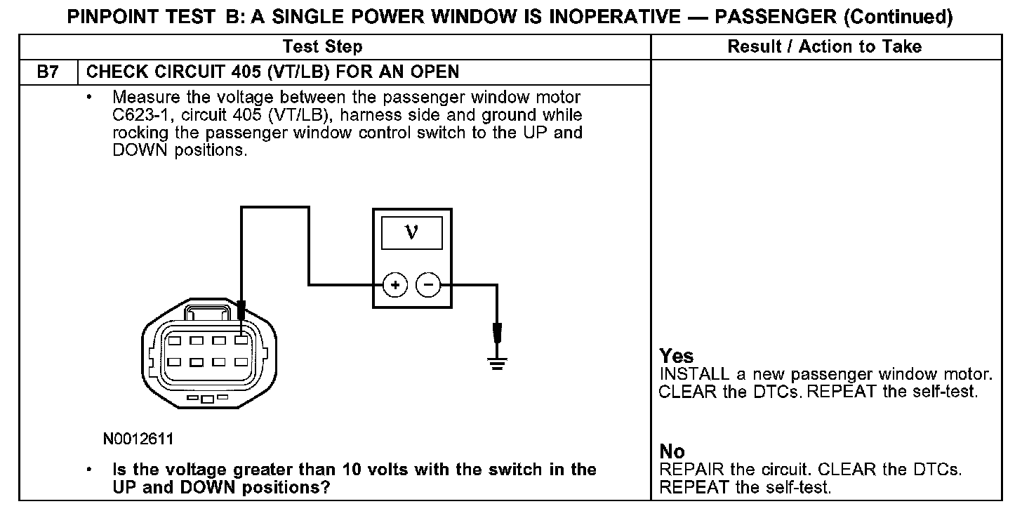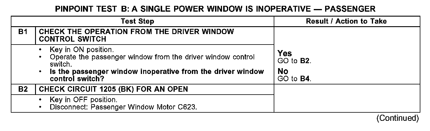 PINPOINT TEST B: A SINGLE POWER WINDOW IS INOPERATIVE - PASSENGERB1-B2: