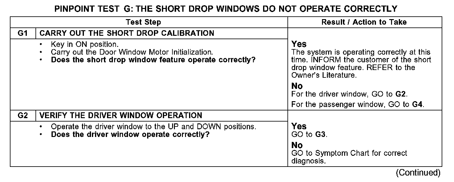 PINPOINT TEST G: THE SHORT DROP WINDOWS DO NOT OPERATE CORRECTLYG1-G2: