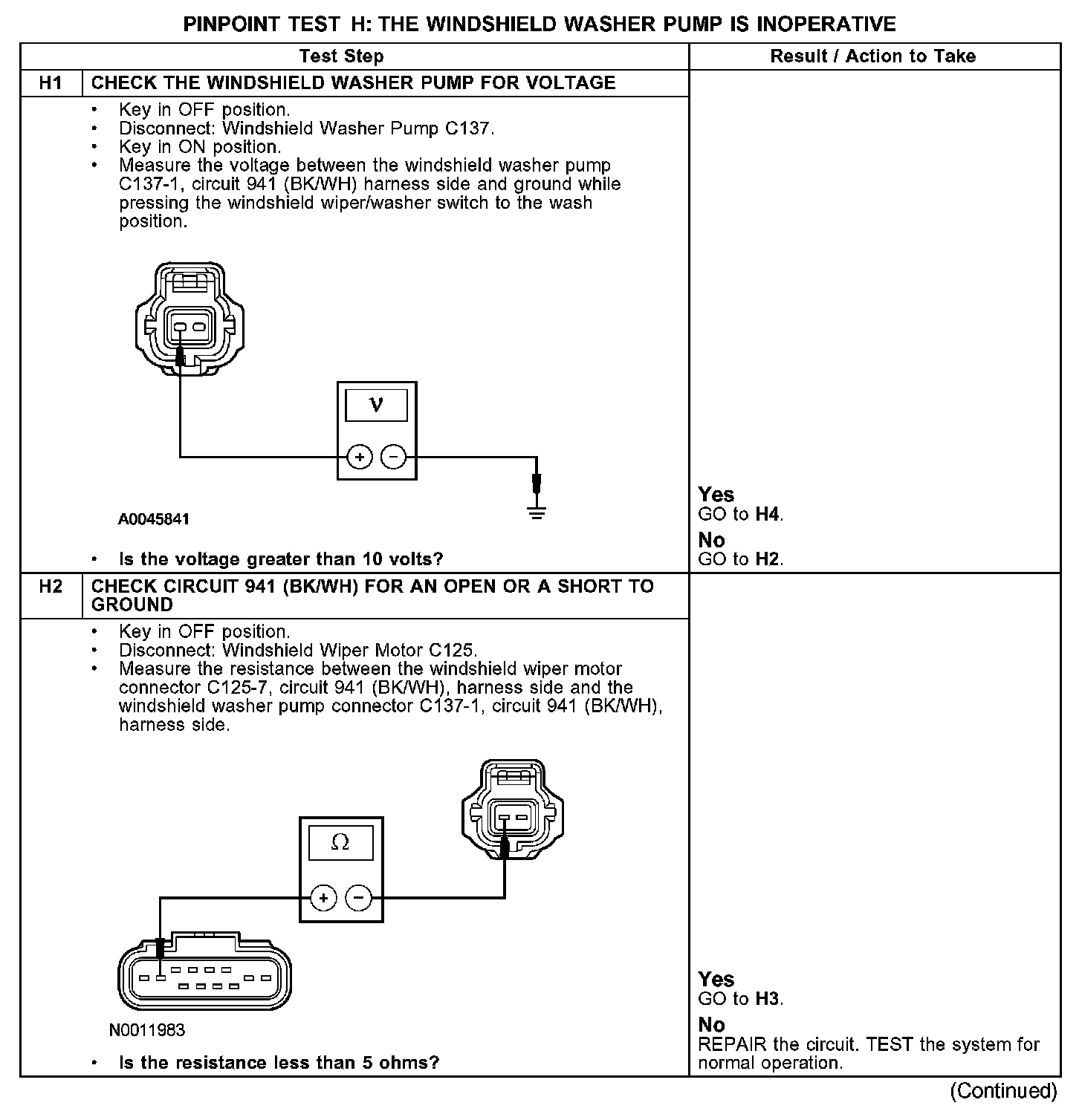 PINPOINT TEST H: THE WINDSHIELD WASHER PUMP IS INOPERATIVEH1-H2: