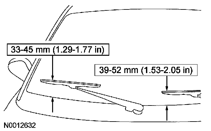 - Align the wiper blades to 33-45 mm (1.29-1.77 inches) for the RH wiper blade, and 39-52 mm (1.53-2.05 inches) for the LH wiper blade.