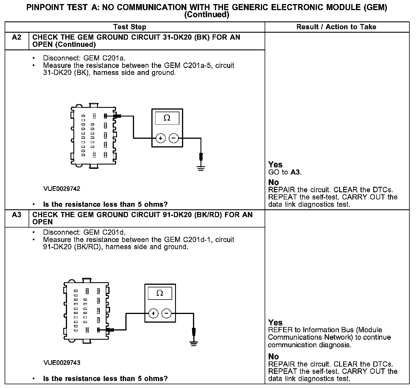 PINPOINT TEST A: NO COMMUNICATION WITH THE GENERIC ELECTRONIC MODULE (GEM)A1-A2: