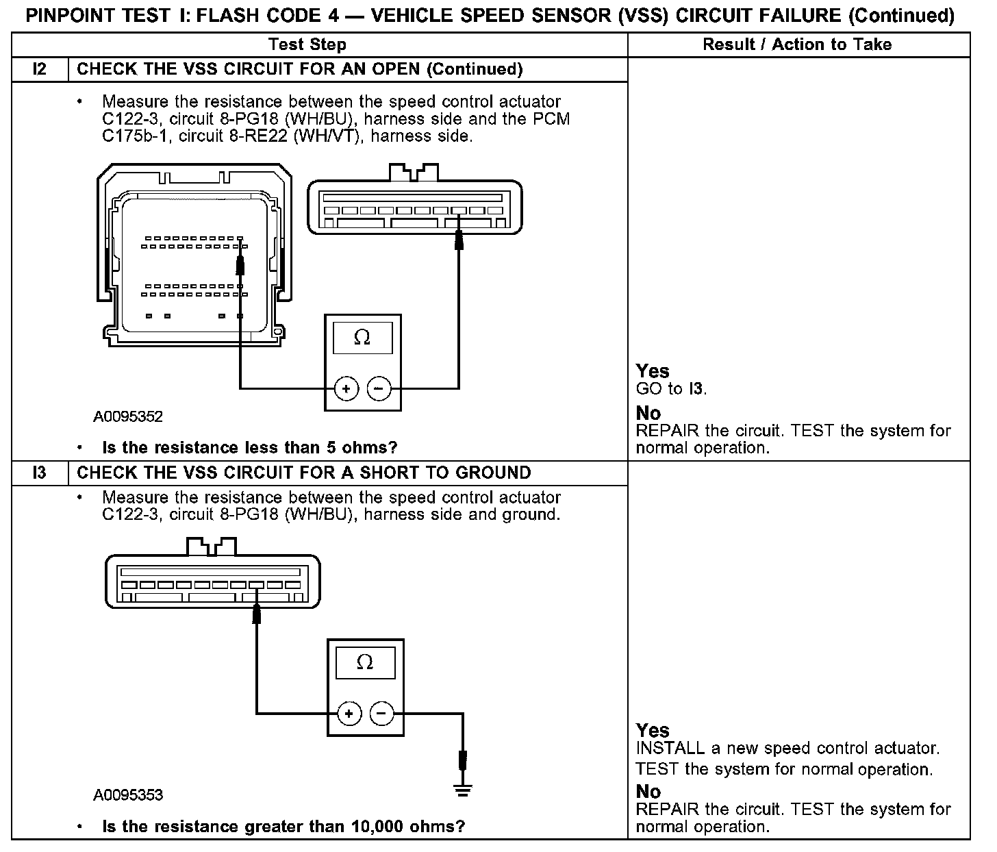 Test I: Flash Code 4 - Vehicle Speed Sensor (VSS) Circuit Failure