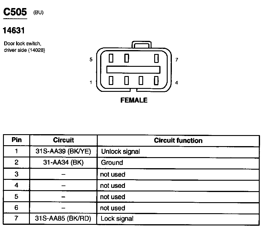Door Lock Switch, Driver Side