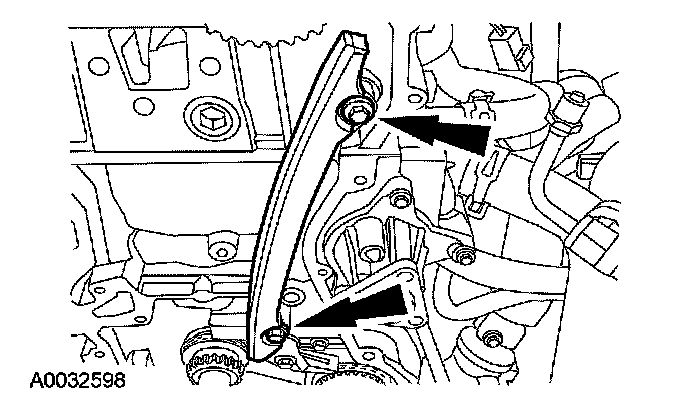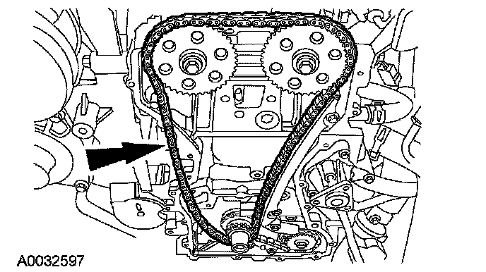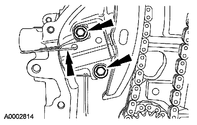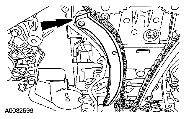1. Compress the timing chain tensioner and insert a paper clip into the hole.