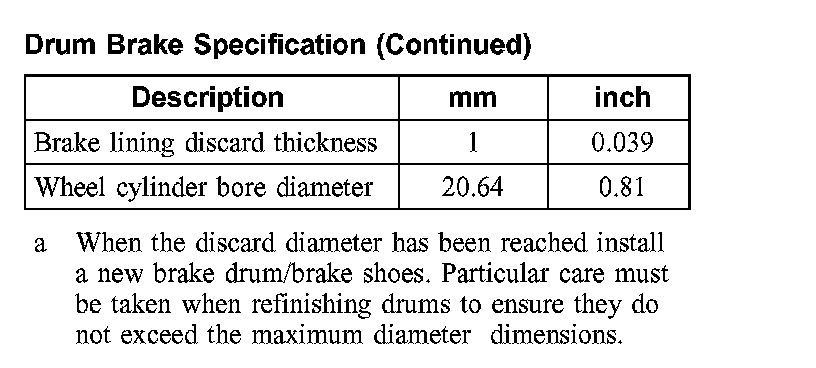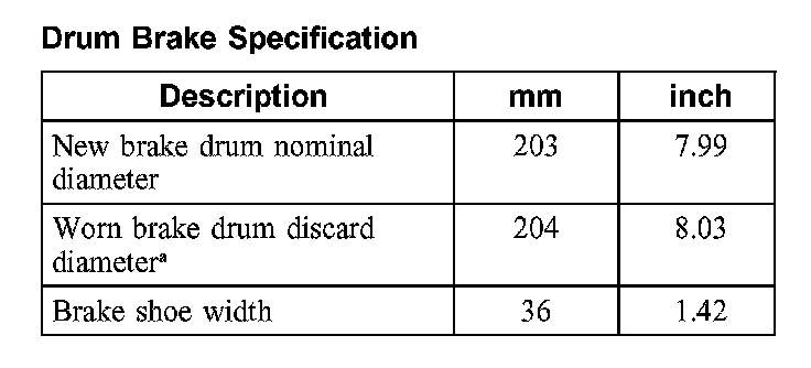 Drum Brake Specification: