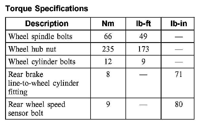 Torque Specifications: