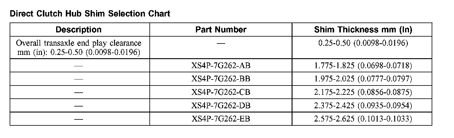 Direct Clutch Hub Shim Selection Chart