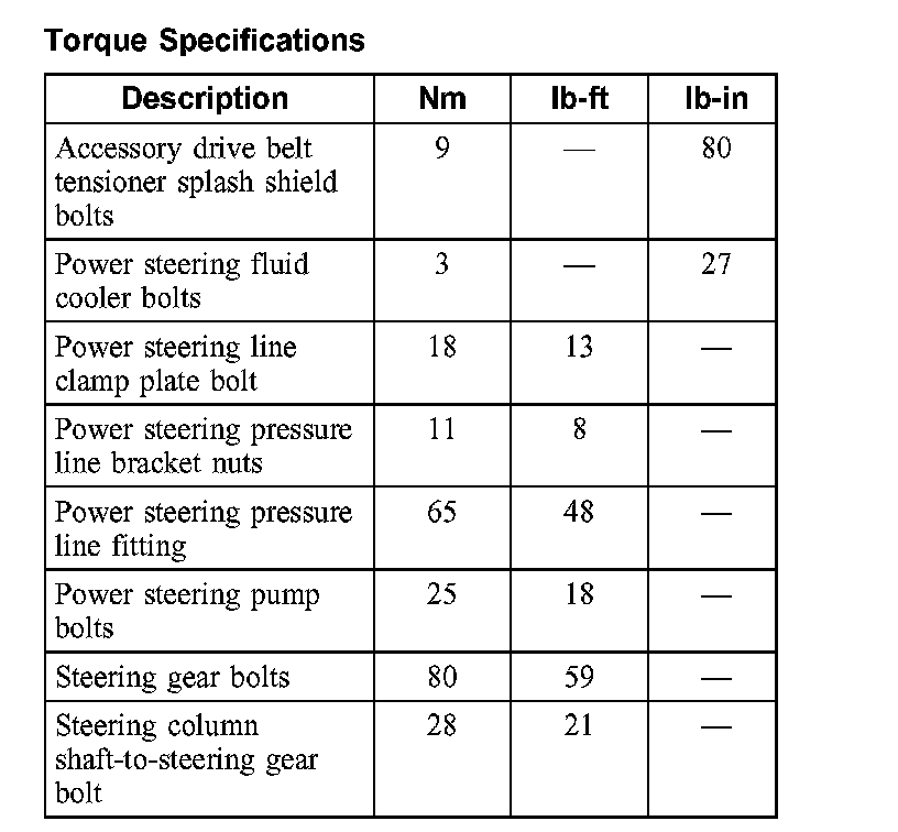 Torque Specifications: