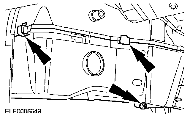 2 Depress the tabs on the shift cable and remove the cable from the bracket.