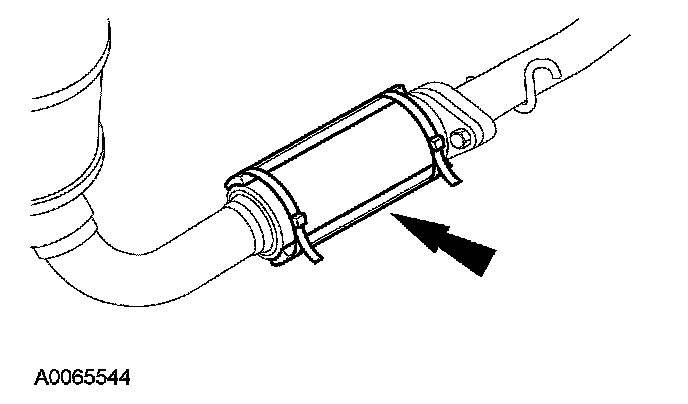 7. Disconnect the center exhaust hanger and support the exhaust with wire.