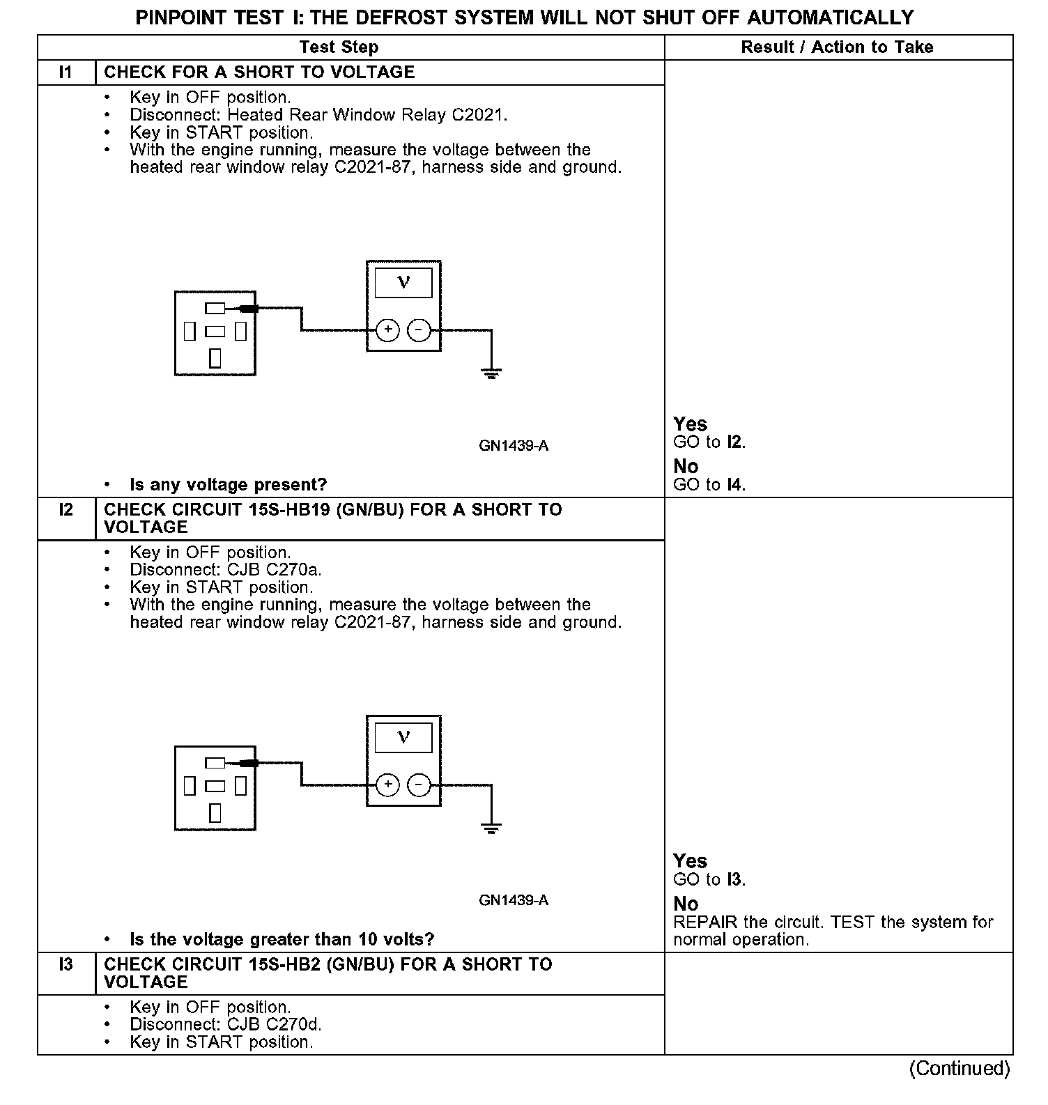 PINPOINT TEST I: THE DEFROST SYSTEM WILL NOT SHUT OFF AUTOMATICALLYI1-I3: