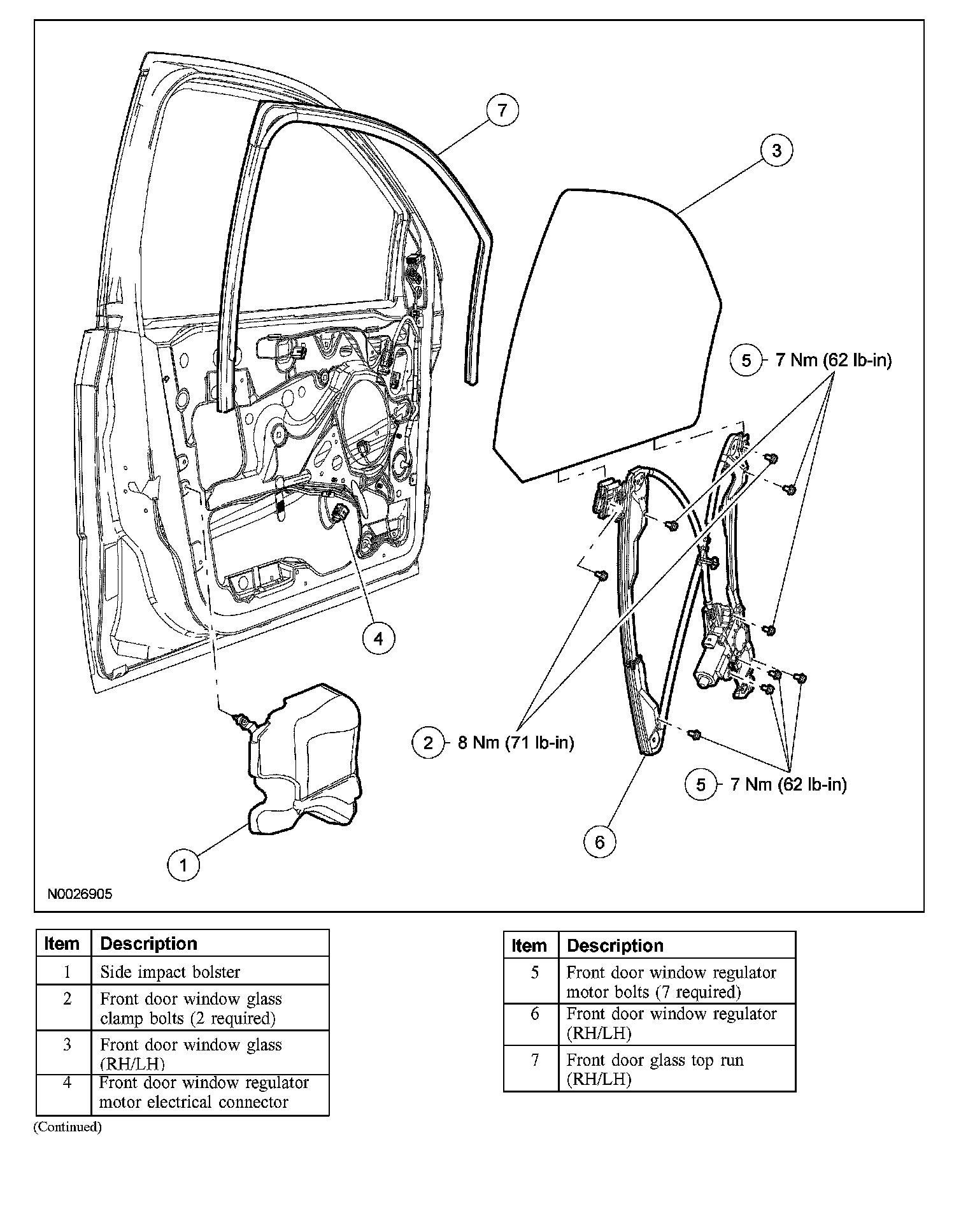Front Door Glass, Frames and Mechanisms - Exploded View
